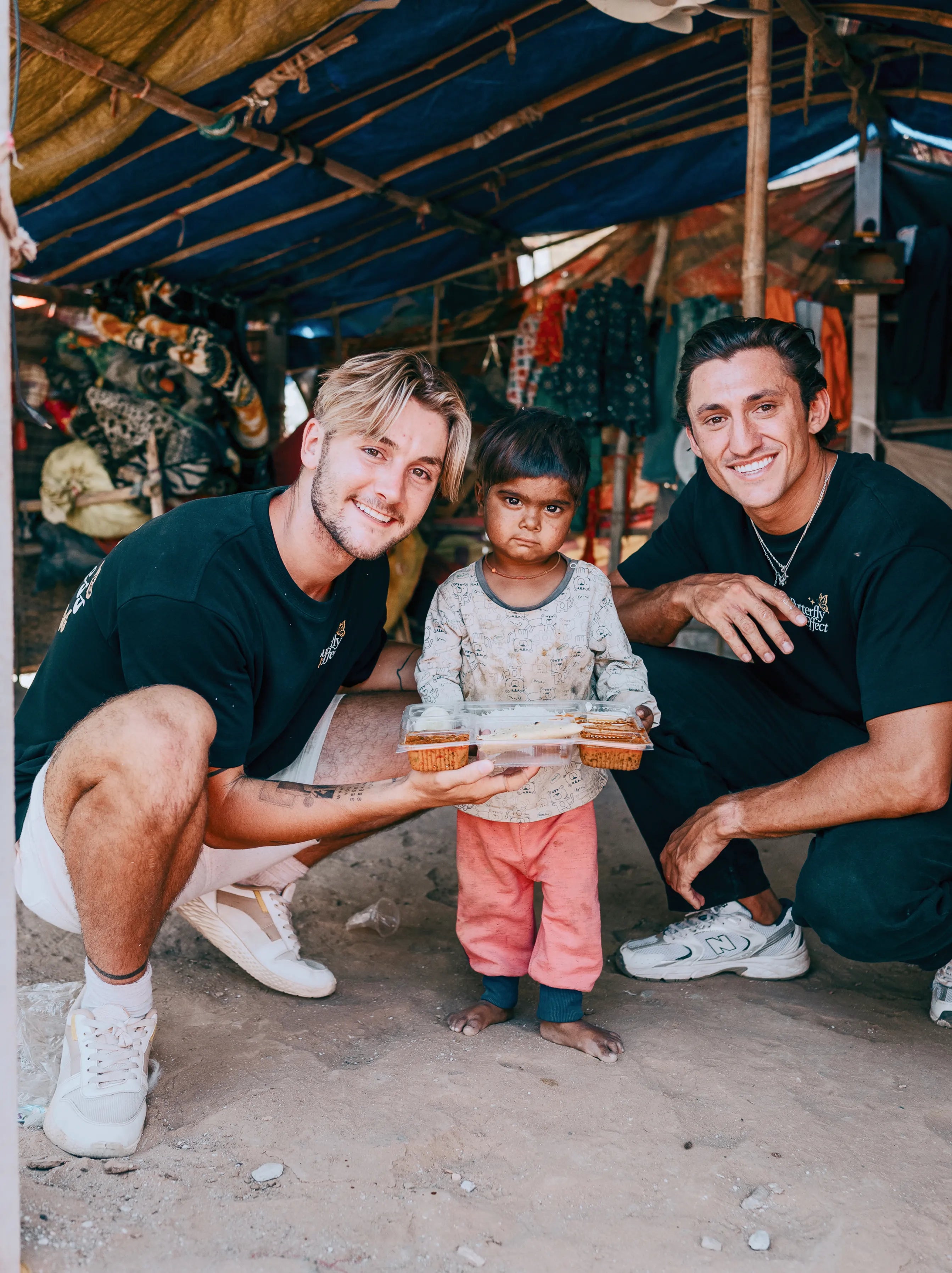 We are not a charity, nor are we a non-profit. But with every purchase, we give part of the profit to help provide 20 meals to people in need. We do this through vetted meal distribution partners in Africa, India and Indonesia. And whenever we can, we go in person to these places to help with the giving.