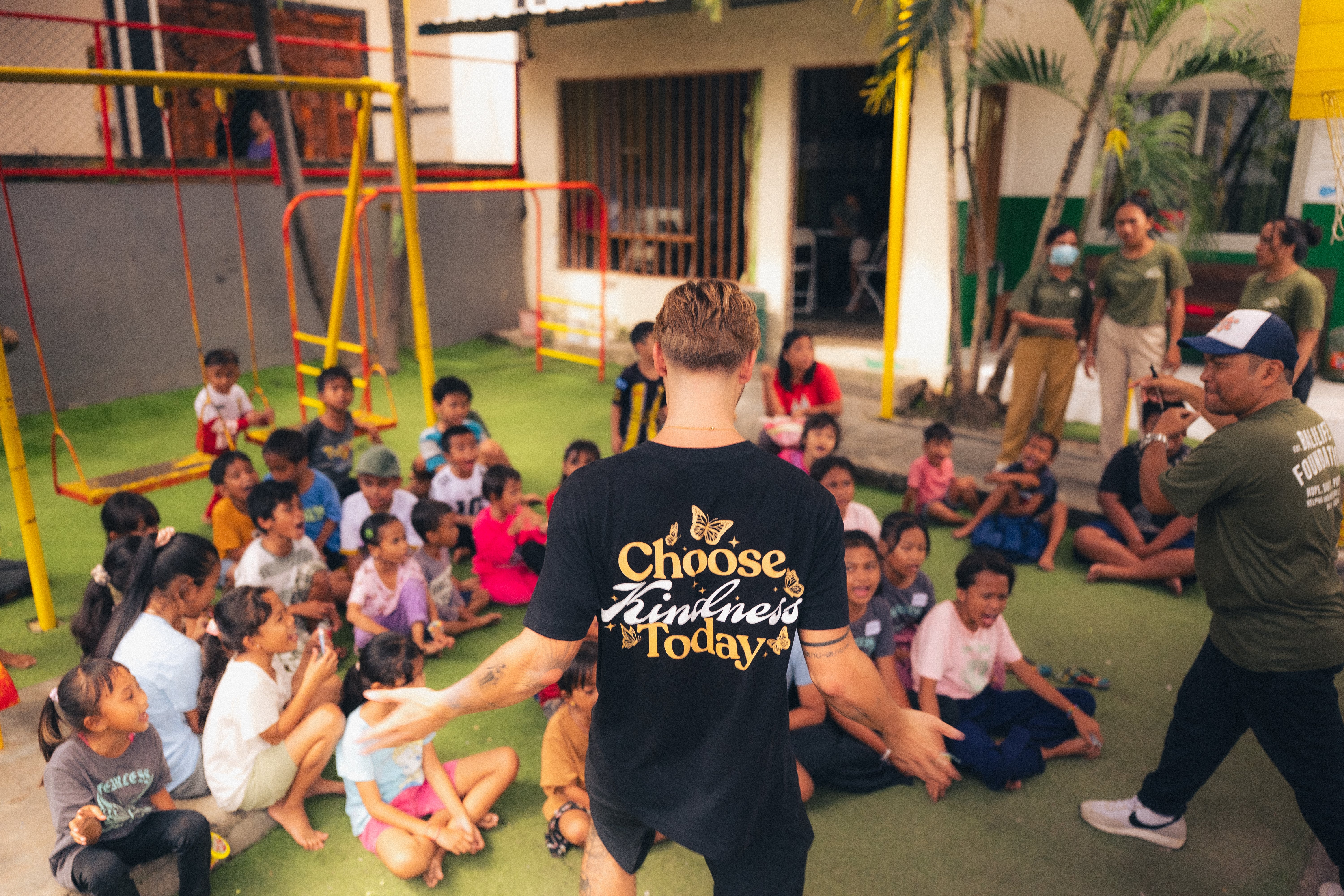 Our premium t-shirts are custom designed and are worn on all of our giving trips. It's comfortable, high-quality and a reminder everyday to spread love and kindness. That's what this brand is about.